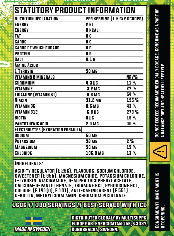 One tub contains 100 servings, enough to mix 100 liters of hydration. That’s the equivalent of 200 bottles of 0.5 L sports drink, in one compact tub.