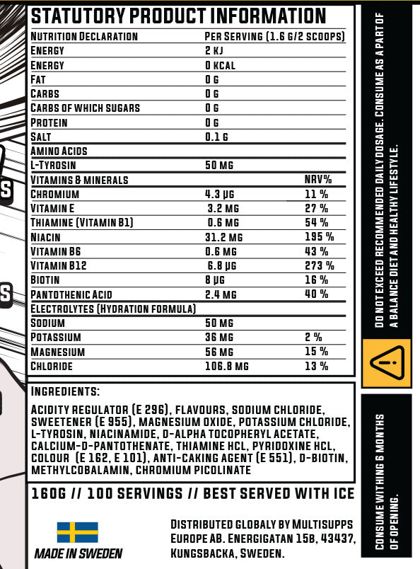 One tub contains 100 servings, enough to mix 100 liters of hydration. That’s the equivalent of 200 bottles of 0.5 L sports drink, in one compact tub.